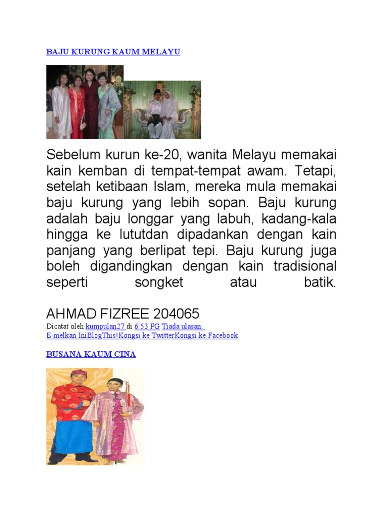 Pakaian Tradisional Kaum Di Malaysia Pdf